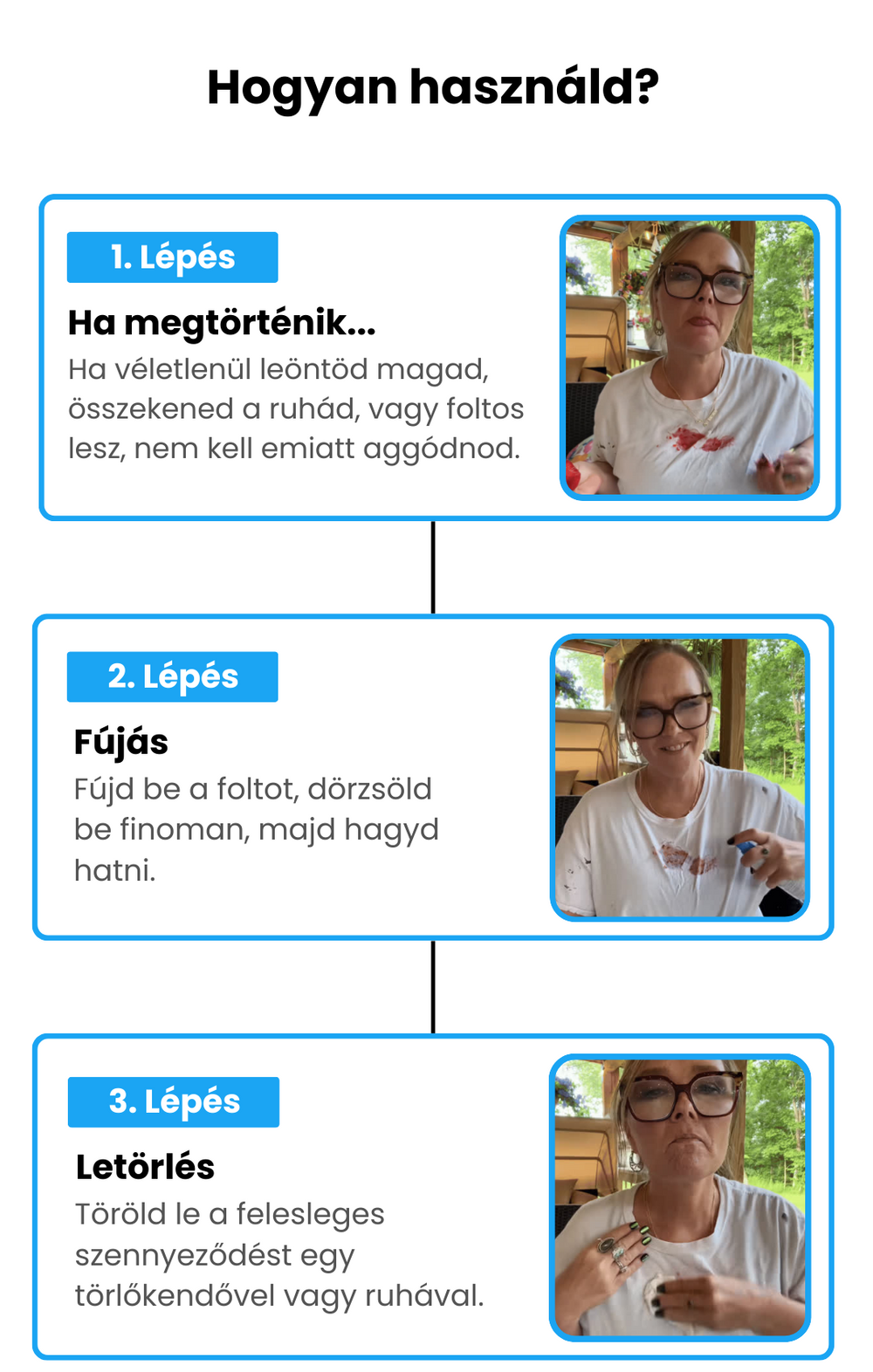 Szinte nem kell emiatt aggódnod, mert pontosan ezért alkottuk meg ezt a sprayt hogy akár villámgyorsan, egyszerűen és hatékonyan eltüntesd a foltokat, amikor a legnagyobb szükséged van rá.